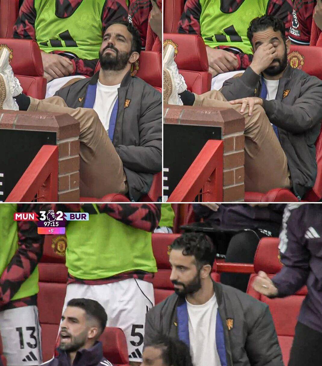 所幸布鲁诺·费尔南德斯在补时阶段罚入点球,帮助曼联3-2险胜伯恩利,暂时缓解了危机。